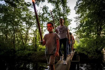 Wenn die Nacht hereinbricht und die Welt zur Ruhe kommt, beginnt das Abenteuer: Unsere Fackelwanderung zur Alz ist ein absolutes Highlight für die Kinder. Tagsüber lädt die Alz zum Schwimmen und Paddeln ein, doch nachts entfaltet sie ihren ganz eigenen Zauber. Im warmen Licht der Fackeln erkunden die kleinen Abenteurer die Natur in einer einzigartigen Stimmung.