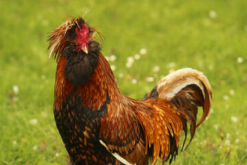 Mein Name ist Caruso, zusammen mit meinen Mädels darf ich hier frei den Hof erkunden.