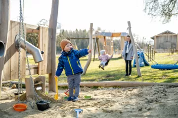 Der Wasser- und Sandspielplatz ist ein beliebter Ort für kleine Abenteurer. Hier entstehen die kreativsten Burgen, Staudämme und Schlösser. Das kühle Nass und der weiche Sand laden zum Spielen, Forschen und Entdecken ein. Wer es lieber etwas höher mag, der findet in der Spielkuh Frieda eine perfekte Möglichkeit, sich auszutoben – Klettern, Rutschen und Balancieren ist hier für die Kinder eine wahre Freude.