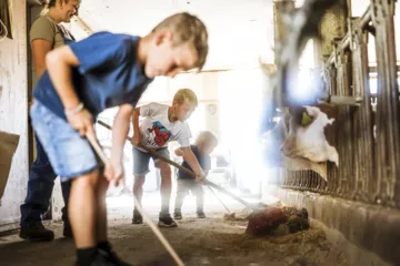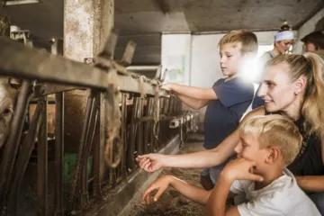 Landwirtschaft miterleben, wir haben eine aktive Landwirschaft mit 70 Milchkühen, Kinder sind bei uns immer willkommen. Auf unserem traditionell geführten Bauernhof mit aktiver Landwirtschaft bieten wir dir und deinen Kindern die Möglichkeit, das Leben auf dem Land hautnah zu erleben. Hier steht das harmonische Zusammenspiel von Mensch, Tier und Natur im Mittelpunkt. Die Kinder haben die Chance, die täglichen bäuerlichen Aufgaben kennenzulernen und den respektvollen Umgang mit unseren Tieren, wie den Pferden und Kühen, zu erlernen.