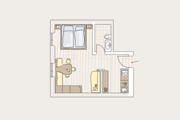 - Raumaufteilung: ein Wohn- und Schlafraum