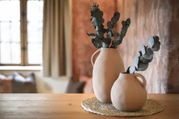 - Wohnraum: Großzügiger Wohnraum mit Holzbalkendecke, stilvoller Essbereich