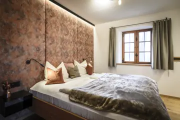 Die Ferienwohnung Igel, 2024 komplett neu renoviert, liegt ebenerdig, wie man hier in Bayern sagt, im Beihaus. Sie ist barrierefrei und rollstuhlgeeignet. Dezente Lichtelemente betonen das offene Wohnkonzept, während traditionelle Materialien und eine geschmackvolle Einrichtung einen heimelig-modernen Komfort bieten. Diese Ferienwohnung ist ein richtiges Igelnest mit großzügiger Terrasse in einer schönen Gartenanlage mit Wasserlauf.