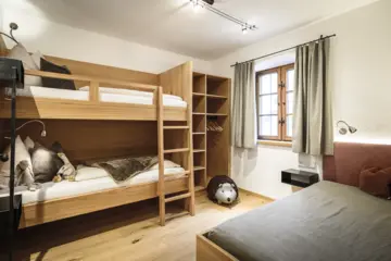 - Schlafzimmer: Elternschlafzimmer, Kinderzimmer mit drei Betten, davon ein Hochbett