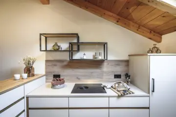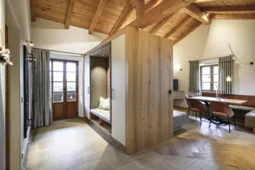 In der Ferienwohnung Fuchs könnt ihr auf dem sonnigen Ostbalkon die Weite der Chiemseelandschaft genießen. Die Wohnung bietet ein besonderes Highlight für Kinder: ein eigenes Kinderzimmer mit einer Spiel- und Schlaf-Galerie. Die offene Bauweise und die geschmackvolle Einrichtung verleihen dieser gemütlichen Wohnung ihre Großzügigkeit. Moderner Komfort und der Charme eines Urlaubs auf dem Bauernhof gehen hier Hand in Hand. Die Ferienwohnung Fuchs befindet sich im 1. Stock des Beihauses und hat 2024 einen neuen Look bekommen.