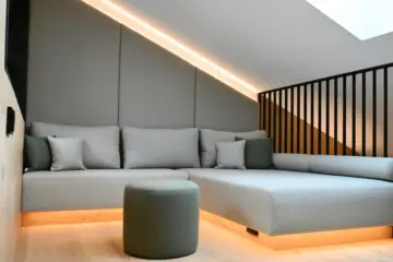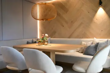 - Wohnraum: Großzügige Wohnraum-Galerie, große Sofa-Ecke, stilvoller Essbereich