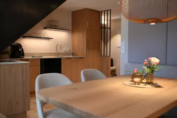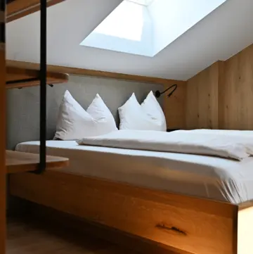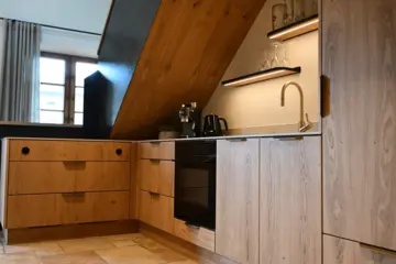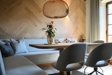 Auf 69 qm bietet unsere Ferienwohnung Pony viel Platz und ist die einzige Wohnung auf dem Hof mit drei Schlafzimmern – perfekt für große Familien oder den Urlaub mit den Großeltern. Holz und Metall prägen den Wohnraum. Die offene Wohnraum-Galerie sorgt für viel Licht und eine angenehme Atmosphäre. Die Wohnung liegt im ersten Stock unseres Zuhauses.