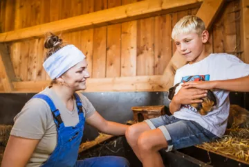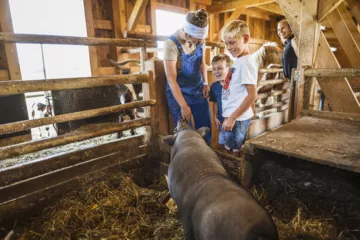 Das Tierhaus auf dem Moierhof ist ein wahres Paradies für kleine Tierfreunde. Hier leben Ziegen, Esel, Enten, Kaninchen, Ponys und Schafe in einem gemütlichen, großzügigen Zuhause und freuen sich über jede Streicheleinheit. Ein besonderes Highlight: Die Kinder können nicht nur hautnah dabei sein, sondern auch auf der Empore direkt über den Tieren schlafen – ein unvergessliches Erlebnis, das Groß und Klein begeistert!