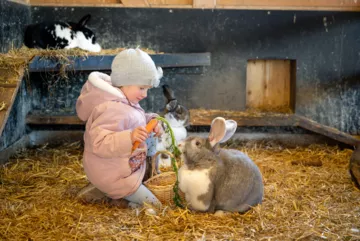 Viel Platz zum Kuscheln, Streicheln und Liebhaben findest du in unserem gemütlichen Kleintierhaus. Hier wohnen unsere liebevollen Tiere: Meerschweinchen, Hasen, die Eseldame Mausi, die Ponys Nala, Lady, Rosi und Moni, die Schafe Max, Erni und Bert, die Ziege Mucki, der Ziegenbock Uri und unser Hängebauchschwein Hanniball.